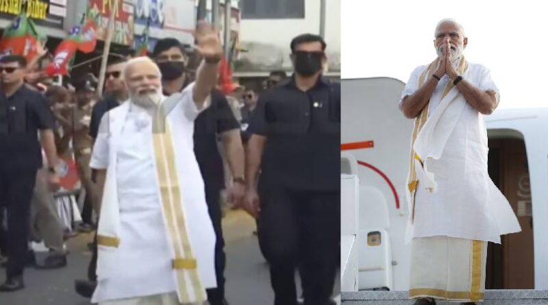 കേരള സ്റ്റൈലില് കസവുമുണ്ടും ജുബ്ബയുമുടുത്ത് പ്രധാനമന്ത്രി കൊച്ചിയിൽ