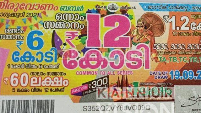 തിരുവോണം ബമ്പർ നറുക്കെടുപ്പ്; ഒന്നാം സമ്മാനം ഈ ടിക്കറ്റിന്