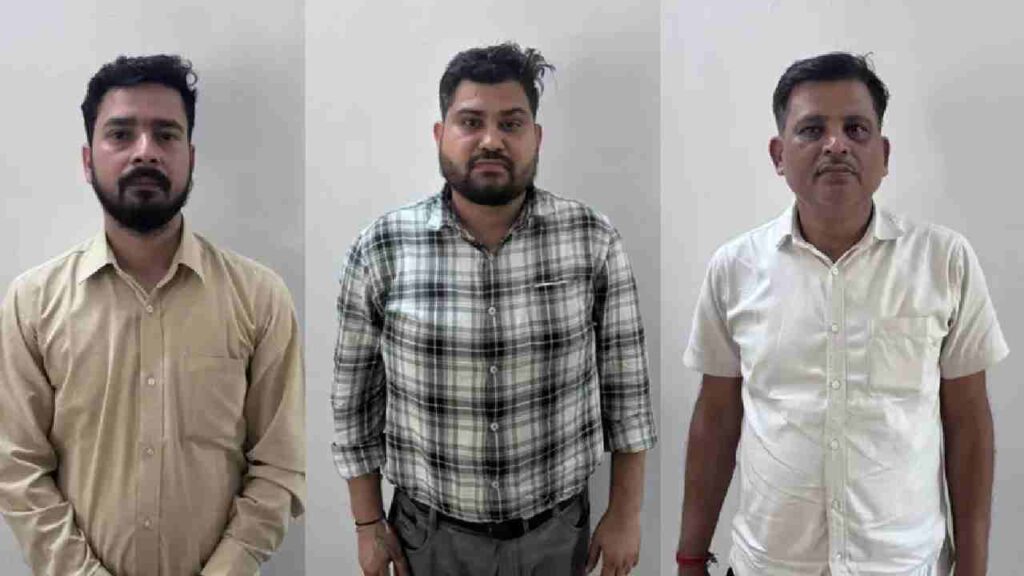 ഖാസിയാബാദ് സ്വദേശി ഋഷികേഷ് തിവാരി(32), ഉത്തർപ്രദേശ് സ്വദേശി പ്രശാന്ത് ഖേവൽ(28), ഫരിദാബാദ് സ്വദേശിയായ പ്രകാശ് ജയ്(54) എന്നിവരാണ് പിടിയിലായത്. നോയിഡയിൽ നിന്നാണ് കണ്ണൂർ സിറ്റി സൈബർ ക്രൈം പോലീസ് പ്രതികളെ പിടികൂടിയത്.