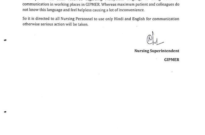 ന്യൂഡൽഹി: നഴ്സിങ് ഓഫീസർമാർ മലയാളത്തിൽ സംസാരിക്കരുതെന്ന വിവാദ സർക്കുലർ പിൻവലിച്ച് ഡൽഹി ജി.ബി. പന്ത് ആശുപത്രി അധികൃതർ.