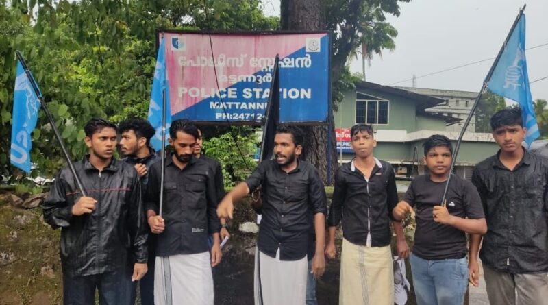 മുഖ്യമന്ത്രിയുടെ രാജി ആവശ്യപ്പെട്ട് കറുത്ത വസ്ത്രമണിഞ്ഞ് മട്ടന്നൂർ പോലീസ് സ്റ്റേഷന് മുന്നിൽ കെ.എസ്.യു പ്രതിഷേധം