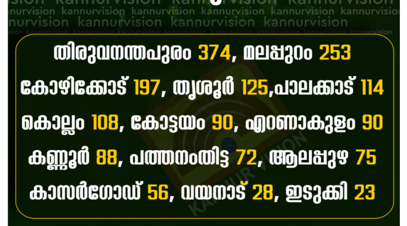 കൊവിഡ് 19മായി ബന്ധപ്പെട്ട് ജില്ലയില് നിലവില് നിരീക്ഷണത്തിലുള്ളത് 11590 പേരാണ്. ഇവരില് അഞ്ചരക്കണ്ടി കോവിഡ് ട്രീറ്റ്മെന്റ് സെന്ററില് 235 പേരും കണ്ണൂര് ഗവ. മെഡിക്കല് കോളേജ് ആശുപത്രിയില് 175 പേരും തലശ്ശേരി ജനറല് ആശുപത്രിയില് 41 പേരും കണ്ണൂര് ജില്ലാ ആശുപത്രിയില് 44 പേരും കണ്ണൂര് ആസ്റ്റര് മിംസ് ആശുപത്രിയില് 13 പേരും ധനലക്ഷ്മി ആശുപത്രിയില് ഒരാളും തലശ്ശേരി ഇന്ദിരാഗാന്ധി ജനറല് ആശുപത്രിയില് രണ്ട് പേരും ഫസ്റ്റ് ലൈന് കോവിഡ് ട്രീറ്റ്മെന്റ് സെന്ററുകളില് 408 പേരും വീടുകളില് 11061 പേരുമാണ് നിരീക്ഷണത്തിലുള്ളത്.