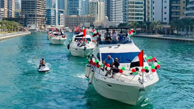 ദുബായ് മറീനയിൽ സ്വാതന്ത്ര്യ ദിനാഘോഷ ഭാഗമായി 50 യോട്ടുകളുടെ പരേഡ്