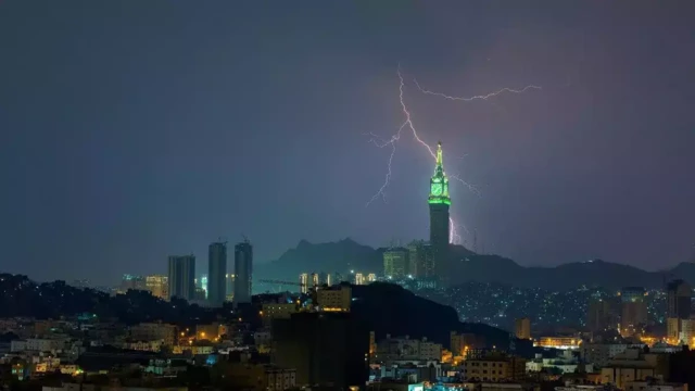 മക്കയിലെ ഹറമിനടുത്തുള്ള ക്ലോക്ക് ടവറില് ഇടിമിന്നല് പതിക്കുന്ന രംഗം വൈറൽ