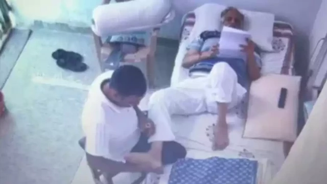 ന്യൂഡല്ഹി: കള്ളപ്പണം വെളുപ്പിക്കൽ കേസിൽ അറസ്റ്റിലായ ഡൽഹി ആരോഗ്യമന്ത്രി സത്യേന്ദർ ജെയിന് തീഹാർ ജയിലിൽ വിഐപി പരിഗണന ലഭിക്കുന്നതിന്റെ വീഡിയോ ബി.ജെ.പി പുറത്തുവിട്ടു. സത്യേന്ദർ ജെയിനിന് വിഐപി ചികിത്സ നൽകിയതിനെ തുടർന്ന് തിഹാർ ജയിൽ സൂപ്രണ്ട് അജിത് കുമാറിനെ അടുത്തിടെ സസ്പെൻഡ് ചെയ്തിരുന്നു. ഇതിന് പിന്നാലെയാണ് ജയിലിനുള്ളിൽ നിന്നുള്ള ദൃശ്യങ്ങൾ പുറത്തുവന്നത്. ജെയിൻ തന്റെ ശരീരവും തലയും മസാജ് ചെയ്യിക്കുന്നത് ദൃശ്യങ്ങളിൽ കാണാം.