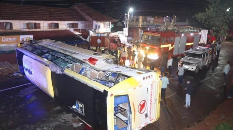 മണിപ്പാലിൽ നിന്ന്‌ പത്തനംതിട്ടയിലേക്ക്‌ പോകുക ആയിരുന്ന കല്ലട ട്രാവൽസിന്റെ ടൂറിസ്റ്റ്‌ ബസ്സും തലശ്ശേരിയിൽ നിന്ന്‌ കണ്ണൂർ ഭാഗത്തേക്ക്‌ പോകുക ആയിരുന്ന മിനി കൺടെയ്‌നർ ലോറിയുമാണ്‌ കൂട്ടിയിടിച്ചത്‌. ലോറി ആന്ധ്രപ്രദേശ്‌ രജിസ്‌ട്രേഷനിൽ ഉള്ളതാണ്‌.