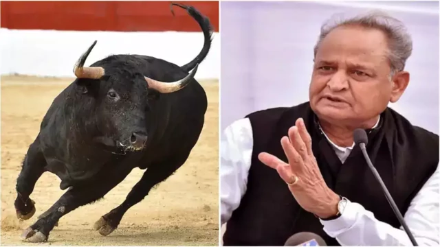 കോണ്‍ഗ്രസ് റാലിക്കിടെ ജനക്കൂട്ടത്തിലേക്ക് ഇടിച്ചുകയറി കാള; കാരണം ബിജെപിയെന്ന് ഗെഹ്ലോട്ട്