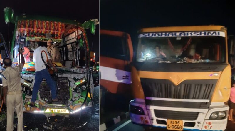 ലോറിക്ക് പിറകില് ബസ് ഇടിച്ച് 23 പേര്ക്ക് പരുക്ക്,അഞ്ചുപേരുടെ നില ഗുരുതരം