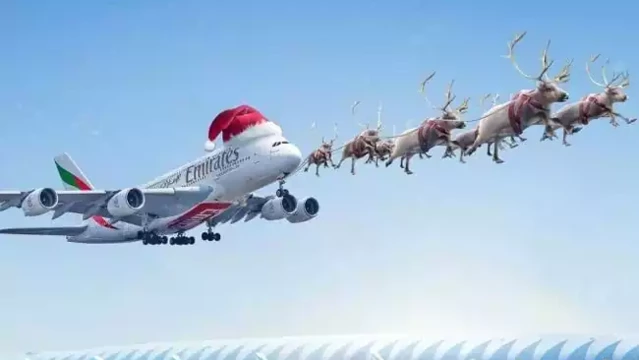 സാൻ്റയും, റെയ്ന്ഡീറുകള് വലിക്കുന്ന ഹിമവാഹനത്തില് മഞ്ഞിലൂടെയുള്ള സാൻ്റയുടെ സഞ്ചാരവും ക്രിസ്മസ് കാലത്തിൻ്റെ അതിമനോഹര പ്രതീകങ്ങളാണ്. അത്തരമൊരു ക്രിസ്മസ് വീഡിയോ പങ്കുവച്ചെത്തിയിരിക്കുകയാണ് എമിറേറ്റ്സ് എയർലൈൻസ്. സാന്റയുടെ വാഹനം പോലെ എമിറേറ്റ്സ് യാത്രാവിമാനം ആകാശത്തേക്കുയരുന്നതിൻ്റെ ഗ്രാഫിക് വീഡിയോ ഇൻസ്റ്റഗ്രാം ഉൾപ്പെടെയുള്ള സോഷ്യൽ മീഡിയയിൽ വൈറലാവുകയാണ്.
