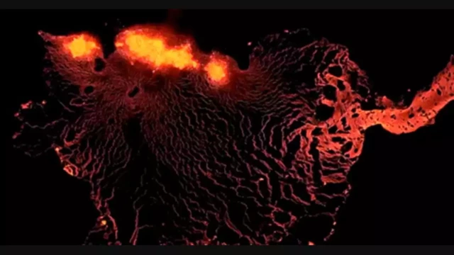 ഓറഞ്ച് നിറത്തിൽ പുറത്തെത്തിയ ലാവ വെള്ളി, ചാര നിറങ്ങളിലേക്കു മാറുന്നതിന്റെ ദൃശ്യങ്ങളും വിഡിയോയിൽ കാണാം. യൂറോപ്പിലെ ഏറ്റവും സജീവമായ അഗ്നിപർവതങ്ങൾ നിലനിൽക്കുന്ന മേഖലയാണ് അഗ്നിയുടെയും ഹിമത്തിന്റെയും നാടെന്നറിയപ്പെടുന്ന ഐസ്‌ലൻഡ്. മധ്യകാലഘട്ടം മുതൽ ഭൂമിയിലൊഴുകിയ ലാവയിൽ മൂന്നിലൊന്നും ഐസ്‌ലൻഡിലെ അഗ്നിപർവതങ്ങളിൽ നിന്നാണ്. ഭൗമപ്ലേറ്റുകളുടെ അതിർത്തിയായ മിഡ് അറ്റ്ലാന്റിക് റിഡ്ജ് മേഖലയിൽ സ്ഥിതി ചെയ്യുന്നതിനാലാണ് ഐസ്‌ലൻ‍ഡിൽ അഗ്നിപർവത വിസ്ഫോടനങ്ങൾ ഇത്രയ്ക്കും വ്യാപകമായതെന്നാണ് അനുമാനം.