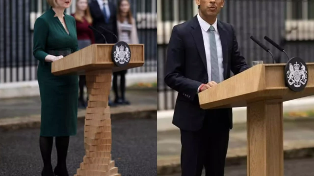 എന്നാൽ ലിസ് ട്രസ്സിന് ആ പ്രസംഗപീഠത്തിൽ നിന്ന് അധികകാലം സംസാരിക്കാൻ കഴിഞ്ഞില്ല. അത് ഒരു “ജെങ്ക ടവർ” പോലെ തോന്നിക്കുന്ന, മരം കൊണ്ടുള്ള ബ്ലോക്കുകൾ അടുക്കിവെച്ച രീതിയിലാണ് നിർമ്മിച്ചിരുന്നത്. സാമ്പത്തിക നയങ്ങളുടെ പേരിൽ കടുത്ത വിമർശനം നേരിട്ട ലിസ് ട്രസിന്‍റെ രാജിക്ക് പിന്നാലെയാണ് ഋഷി സുനക്കിന്‍റെ വരവ്. കുത്തനെയുള്ള ഒരു മരത്തടികൊണ്ട് നിർമ്മിച്ച പ്രസംഗപീഠം സുനക് തിരഞ്ഞെടുത്തു.