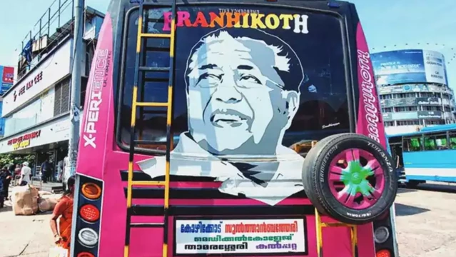 കാഴ്ച്ച മറച്ച് ബസിനു പിന്നിൽ മുഖ്യമന്ത്രിയുടെ ഫോട്ടോ; നടപടിയെടുക്കാതെ എം.വി.ഡി