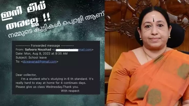 ഇനി ലീവ് തരല്ലേ; കളക്ടര്ക്ക് മെയില് അയച്ച് ആറാം ക്ലാസുകാരി