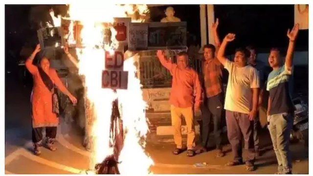ദസറയില് രാവണന് പകരം ഇഡി-സിബിഐ കോലം കത്തിച്ചു; വേറിട്ട പ്രതിഷേധവുമായി കോണ്ഗ്രസ്