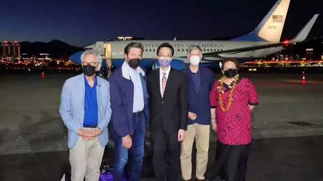ഏഷ്യൻ സന്ദർശനത്തിന്റെ ഭാഗമായാണ് സംഘം തായ്വാനിൽ എത്തിയതെന്നാണ് വിവരം. യുഎസ് സർക്കാർ വിമാനത്തിൽ തായ്പെയ് സോങ്ഷാൻ വിമാനത്താവളത്തിൽ എത്തിയ സംഘത്തിന്റെ ദൃശ്യങ്ങൾ പ്രാദേശിക മാധ്യമങ്ങൾ പുറത്തുവിട്ടു.