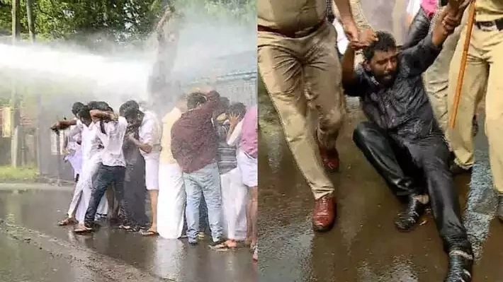 ഗസ്റ്റ് ഹൗസിനു മുന്നിൽ, മുഖ്യമന്ത്രിക്കെതിരെ കരിങ്കൊടി; ജലപീരങ്കി പ്രയോഗിച്ചു