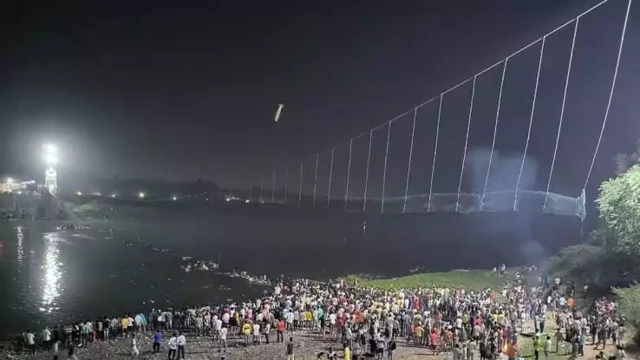 ബ്രിട്ടീഷ് ഭരണകാലത്ത് മച്ചു നദിക്ക് കുറുകെ നിർമ്മിച്ച 140 വർഷം പഴക്കമുള്ള പാലം അറ്റകുറ്റപ്പണികൾക്കായി ആറ് മാസത്തേക്ക് അടച്ചിട്ടിരിക്കുകയായിരുന്നു. 230 മീറ്റർ നീളമുള്ള പാലം നവീകരണത്തിന് ശേഷം നാല് ദിവസം മുമ്പാണ് തുറന്നത്. അവധി ദിവസമായ ഇന്നലെ വലിയ തിരക്കായിരുന്നു. അപകടസമയത്ത് 400 ഓളം പേരാണ് പാലത്തിലുണ്ടായിരുന്നത്. പാലത്തിന്റെ വശങ്ങളിൽ തൂങ്ങിക്കിടക്കുന്നവരുടെയും സഹായം തേടുന്നവരുടെയും ദൃശ്യങ്ങളും പുറത്തുവന്നു. 170 പേരെ രക്ഷപ്പെടുത്തിയതായി അധികൃതർ അറിയിച്ചു.