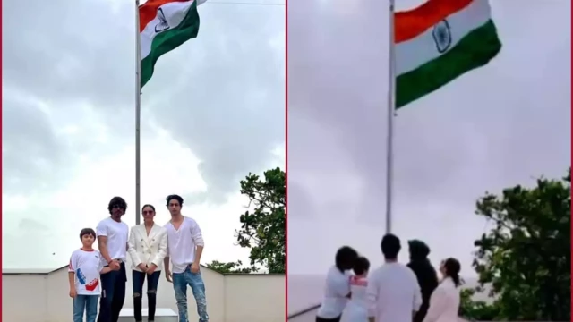 ബോളിവുഡ് നടൻ ഷാരൂഖ് ഖാനും കുടുംബവും ‘ഹർ ഘർ തിരംഗ’ (എല്ലാ വീടുകളിലും ത്രിവർണ്ണ പതാക) എന്ന ആഹ്വാനത്തിൽ പങ്കുചേർന്നു. കുടുംബം അവരുടെ വീടായ മന്നത്തിന് മുന്നിൽ പതാക ഉയർത്തി. ഷാരൂഖ് ഖാന്‍റെ ഭാര്യയും ഇന്‍റീരിയർ ഡിസൈനറുമായ ഗൗരി ഖാൻ തന്‍റെ ഇൻസ്റ്റഗ്രാം അക്കൗണ്ടിലൂടെയാണ് ചിത്രം പങ്കുവച്ചത്.