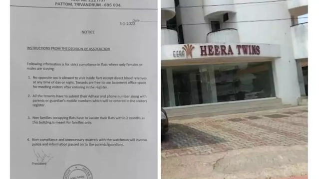 അതേസമയം, നടപടികളിൽ നിന്ന് പിൻമാറില്ലെന്ന നിലപാടിലാണ് അസോസിയേഷൻ. ഇറക്കിയ സർക്കുലർ അവർ പിന്വലിച്ചിട്ടില്ല. അവിവാഹിതരായ യുവതികളുടെ ഫ്ളാറ്റിൽ യുവാക്കളും, യുവാക്കളുടെ ഫ്ളാറ്റില് യുവതികളും വരുന്നത് അസോസിയേഷൻ വിലക്കിയിരുന്നു.