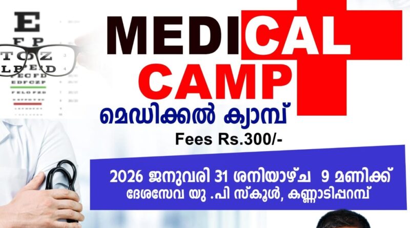 വ്യാപാരി വ്യവസായി സമിതി കണ്ണാടിപറമ്പ് യൂണിറ്റ്‌ മെഡിക്കൽ ക്യാമ്പ് സംഘടിപ്പിക്കുന്നു