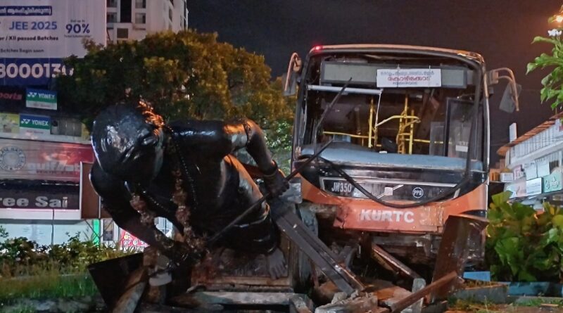 Latestകേരളം തൃശൂരില് കെഎസ്ആര്ടിസി ബസ് ശക്തൻ തമ്ബുരാന്റെ പ്രതിമയിലേക്ക് ഇടിച്ചു കയറി മൂന്നുപേര്ക്ക് പരിക്ക്; പ്രതിമ തകര്ന്നു June 9, 2024 webdesk തിരുവനന്തപുരത്തു നിന്ന് കോഴിക്കോട്ടേക്ക് പോവുകയായിരുന്നു കെഎസ്ആർടിസിയുടെ ലോഫ്ലോർ ആണ് അപകടത്തില്പ്പെട്ടത്. ഡ്രൈവർ ഉറങ്ങിപ്പോയതാണ് അപകടത്തിനിടയാക്കിയതെന്നാണ് പ്രാഥമിക നിഗമനം.അപകടം പുലർച്ചെ മൂന്നുമണിയോടെ ആയിരുന്നു .