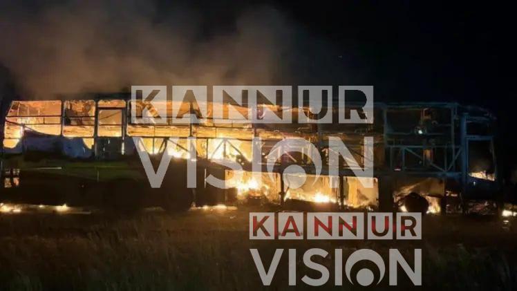കര്ണൂല് പട്ടണത്തില് നിന്ന് 20 കിലോ മീറ്റര് അകലെയുള്ള ഉള്ളിന്ദകൊണ്ട ക്രോസിന് സമീപം പുലര്ച്ചെ 3.30 ഓടെയാണ് അപകടം ഉണ്ടായത്. കാവേരി ട്രാവല്സ് എന്ന വോള്വോ ബസിനാണ് കത്തിപിടിച്ചത്. അപകടം ഉണ്ടായി മിനിറ്റുകള്ക്കകം ബസ് പൂർണമായും കത്തിനശിച്ചു. ബസില് 42 യാത്രക്കാർ ഉണ്ടായിരുന്നു എന്നാണ് റിപ്പോർട്ട്. തീ പടര്ന്നതോടെ 12 പേർ ജനാലകള് തകര്ത്ത് ചാടി രക്ഷപ്പെട്ടു. അപകടമറിഞ്ഞെത്തിയ നാട്ടുകാര് തീ അണയ്ക്കാന് ശ്രമിച്ചു. അഗ്നിശമന സേനാംഗങ്ങള് സ്ഥലത്തെത്തിയപ്പോഴേക്കും ബസ് പൂര്ണ്ണമായും കത്തിനശിച്ചു. പരിക്കേറ്റവരെ കർണൂല് ഗവണ്മെന്റ് ആശുപത്രിയില് പ്രവേശിപ്പിച്ചു. ബസിന്റെ ഡ്രൈവറും ക്ലീനറും ഓടി രക്ഷപ്പെട്ടെന്ന് റിപ്പോർട്ട്.