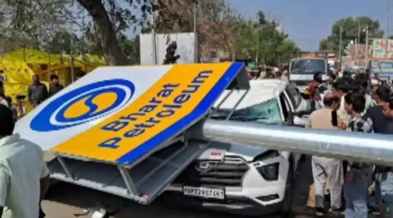 ഓടിക്കൊണ്ടിരുന്ന കാറിലേക്ക് പെട്രോള് പമ്പിലെ ഹൈമാസ്റ്റ് ലൈറ്റ് പോസ്റ്റ് വീണു; യുപിയില് എസ്പി നേതാവിന് ദാരുണാന്ത്യം
