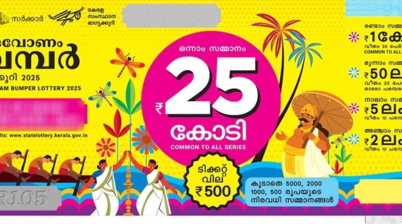 ഓണം ബമ്ബർ BR 105 സമ്മാനാർഹമായ ടിക്കറ്റ് നമ്ബറുകള്