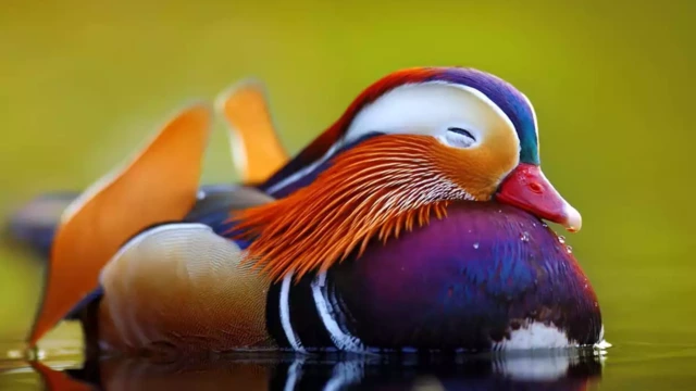 വർണജാലം പോലെ തടാകത്തിൽ നീന്തിത്തുടിച്ച് മാൻഡറിൻ താറാവ്; കൗതുകമായി ദൃശ്യം