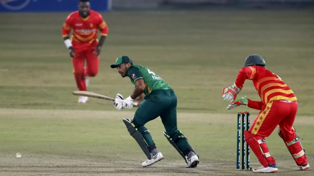 ചെറിയ വിജയലക്ഷ്യത്തിലേക്ക് പാകിസ്ഥാന് മോശം തുടക്കമാണ് ലഭിച്ചത്. ബാബർ അസം (4), മുഹമ്മദ് റിസ്വാൻ (14) എന്നിവരെ വെറും 23 റൺസിന് പാകിസ്താന് നഷ്ടമായി. മൂന്നാം നമ്പറിൽ ഇറങ്ങിയ ഷാൻ മസൂദ് (44) മാത്രമാണ് മികച്ച പ്രകടനം കാഴ്ച്ച വെച്ചത്. മുഹമ്മദ് നവാസ് (22) മികച്ച രീതിയിൽ ശ്രമിച്ചെങ്കിലും അവസാന ഓവറിൽ വീണതോടെ കാര്യങ്ങൾ സിംബാബ്വെയ്ക്ക് അനുകൂലമായി.