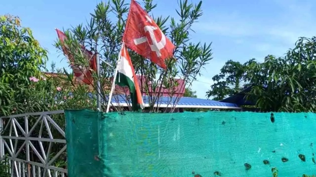 സി.പി.എം പതാകയുടെ താഴെ ദേശീയപതാക കെട്ടി അനാദരവ്