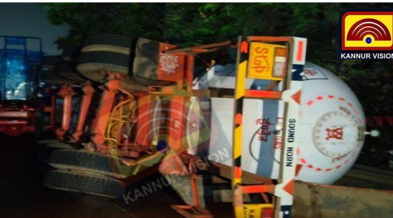 പഴയങ്ങാടിയിൽ പാലത്തിന് മുകളിൽ നിയന്ത്രണം വിട്ട ടാങ്കർലോറി മറിഞ്ഞു