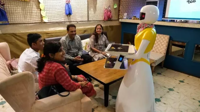 ദീപാവലി ആഘോഷങ്ങളിൽ അതിഥികൾക്ക് ഭക്ഷണം വിളമ്പി റോബോട്ടുകൾ