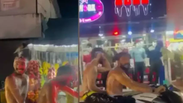 ഭരണിക്കാവ് ജംഗ്ഷനിലൂടെയാണ് യുവാക്കൾ അത്തരമൊരു യാത്ര നടത്തിയത്. രണ്ടുപേരും അർദ്ധനഗ്നരായി സോപ്പ് തേച്ച് കുളിച്ചായിരുന്നു യാത്ര. ഇതിന്റെ വീഡിയോ പകർത്തി സോഷ്യൽ മീഡിയയിൽ പ്രചരിപ്പിച്ചു. ദൃശ്യങ്ങൾ ശാസ്താംകോട്ട പൊലീസിലും എത്തി. പൊലീസിന്റെ ആഹ്വാനപ്രകാരം ഇന്നലെ വൈകുന്നേരമാണ് ഇരുവരും പൊലീസ് സ്റ്റേഷനിൽ ഹാജരായത്.