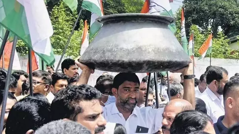 കാക്കനാട്: സ്വർണ കള്ളക്കടത്തു കേസിൽ ആരോപണ വിധേയനായ മുഖ്യമന്ത്രി രാജി വയ്ക്കണമെന്നാവശ്യപ്പെട്ട് കോൺഗ്രസ് ജില്ലാ കമ്മിറ്റിയുടെ നേതൃത്വത്തിൽ കലക്ടറേറ്റിലേക്കു മാർച്ച് നടത്തി. തൃക്കാക്കര മുനിസിപ്പൽ ഓഫിസ് പരിസരത്തു നിന്ന് തുടങ്ങിയ മാർച്ചിൽ ബിരിയാണി ചെമ്പുകളുമായി വനിതകൾ ഉൾപ്പെടെ ഒട്ടേറെ പ്രവർത്തകർ അണിനിരന്നു.