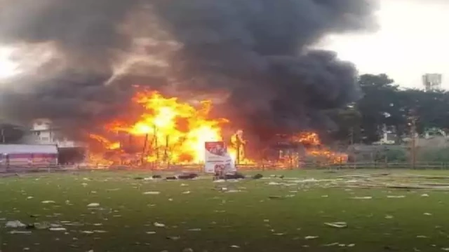 ഉത്തർ പ്രദേശിൽ ദുര്ഗാ പൂജക്കിടെ പന്തലിൽ തീ പടര്ന്ന് മൂന്ന് മരണം