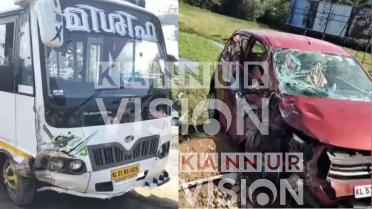 സ്കൂള്‍ ബസ്സും കാറും കൂട്ടിയിടിച്ച്‌ അപകടം; വിദ്യാര്‍ത്ഥികള്‍ ഉള്‍പ്പെടെ അഞ്ച് പേര്‍ക്ക് പരിക്ക്, കാര്‍ യാത്രികരുടെ നില ഗുരുതരം