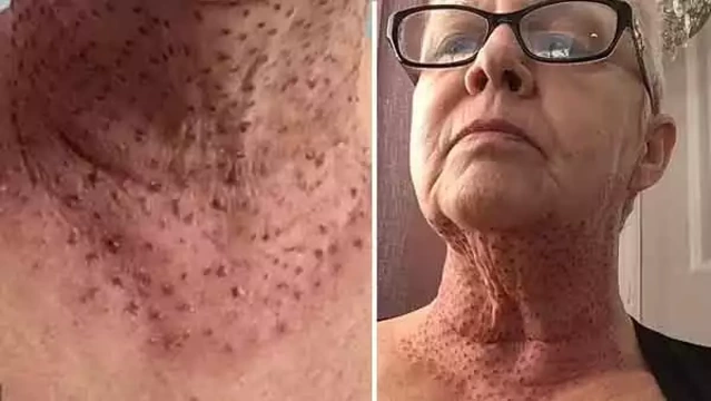 ഡബിൾചിൻ ഒഴിവാക്കാന് ചികിത്സ നടത്തി; 59കാരിയുടെ ശരീരത്തിൽ പല്ലിയുടെ പോലെ പാടുകൾ
