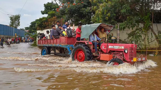 ബെംഗളൂരു വെള്ളക്കെട്ടിൽ; ട്രാക്ടറിൽ കയറി ജോലിക്ക് പോയി ജനങ്ങൾ